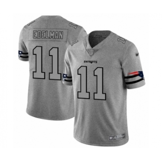 Men's New England Patriots #11 Julian Edelman Limited Gray Team Logo Gridiron Football Jersey