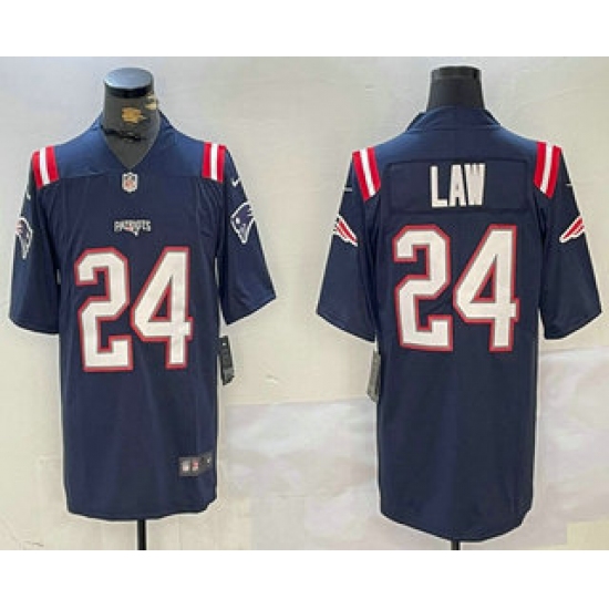 >Men's New England Patriots #24 Ty Law Navy Blue Vapor Stitched Limited Jersey