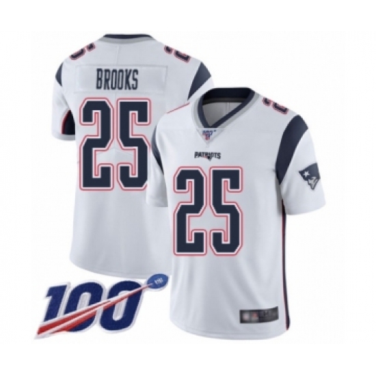 Men's New England Patriots #25 Terrence Brooks White Vapor Untouchable Limited Player 100th Season Football Jersey