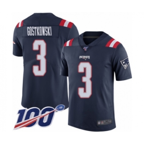 >Men's New England Patriots #3 Stephen Gostkowski Limited Navy Blue Rush Vapor Untouchable 100th Season Football Jersey