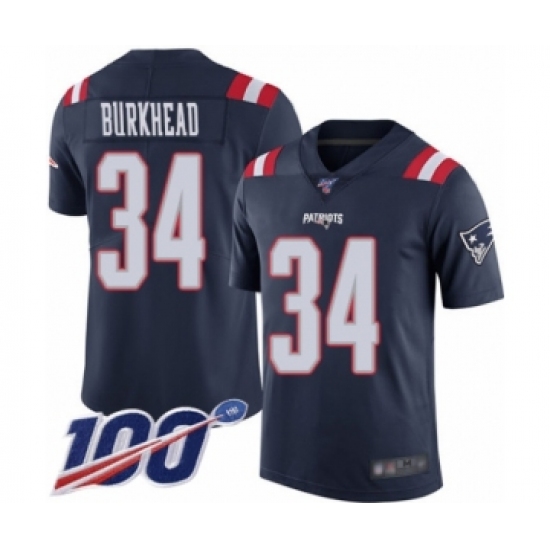 >Men's New England Patriots #34 Rex Burkhead Limited Navy Blue Rush Vapor Untouchable 100th Season Football Jersey