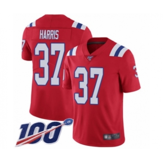 >Men's New England Patriots #37 Damien Harris Red Alternate Vapor Untouchable Limited Player 100th Season Football Jersey