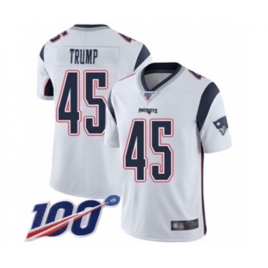 Men's New England Patriots #45 Donald Trump White Vapor Untouchable Limited Player 100th Season Football Jersey
