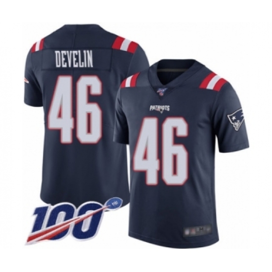 >Men's New England Patriots #46 James Develin Limited Navy Blue Rush Vapor Untouchable 100th Season Football Jersey