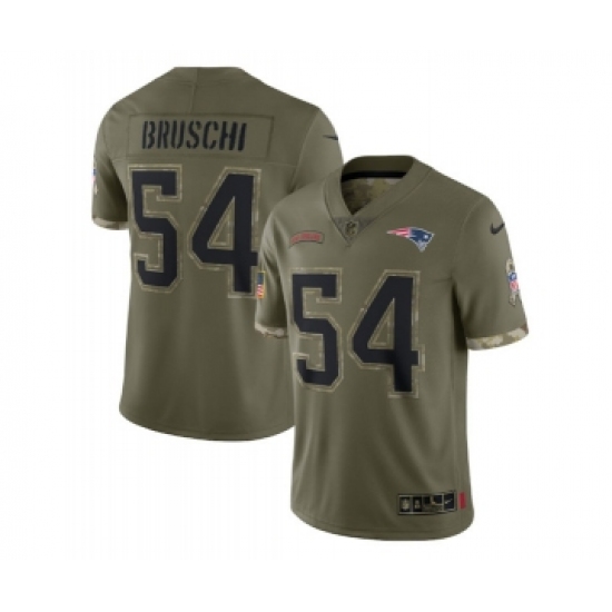 >Men's New England Patriots #54 Tedy Bruschi 2022 Olive Salute To Service Limited Stitched Jersey