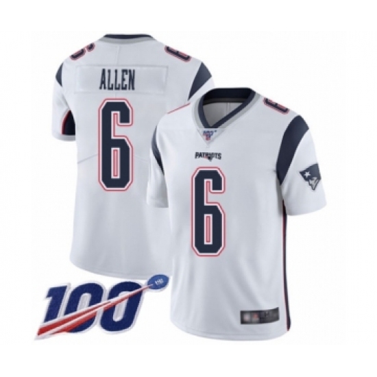 Men's New England Patriots #6 Ryan Allen White Vapor Untouchable Limited Player 100th Season Football Jersey