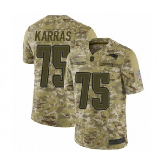 >Men's New England Patriots #75 Ted Karras Limited Camo 2018 Salute to Service Football Jersey