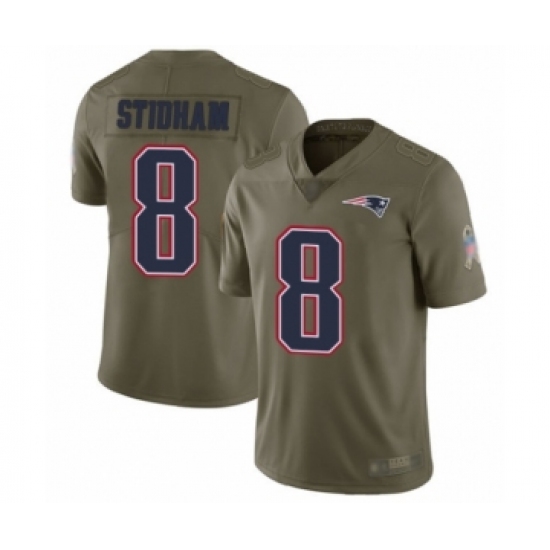>Men's New England Patriots #8 Jarrett Stidham Limited Olive 2017 Salute to Service Football Jersey