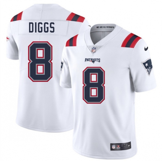 >Men's New England Patriots #8 Stefon Diggs White 2025 Vapor Limited Football Stitched Jersey