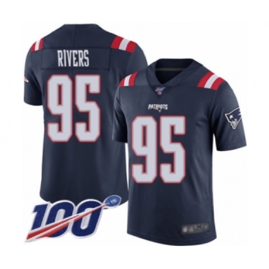 >Men's New England Patriots #95 Derek Rivers Limited Navy Blue Rush Vapor Untouchable 100th Season Football Jersey
