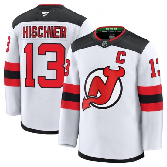 Men's New Jersey Devils #13 Nico Hischier White 2024-25 Away Stitched Hockey Jersey