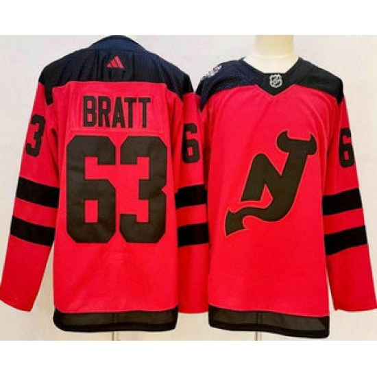 Men's Adidas New Jersey Devils #63 Jesper Bratt Authentic Red Home NHL Jersey