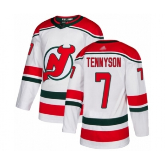 >Men's New Jersey Devils #7 Matt Tennyson Authentic White Alternate Hockey Jersey