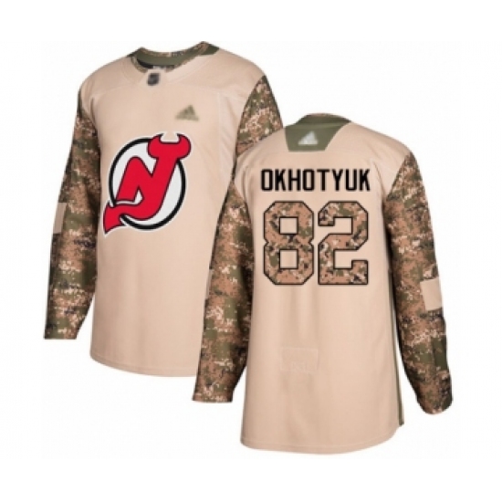 >Men's New Jersey Devils #82 Nikita Okhotyuk Authentic Camo Veterans Day Practice Hockey Jersey