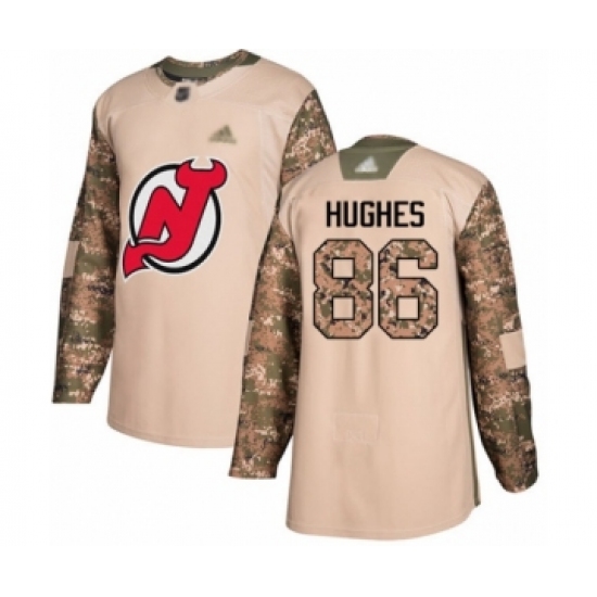 Men's New Jersey Devils #86 Jack Hughes Authentic Camo Veterans Day Practice Hockey Jersey