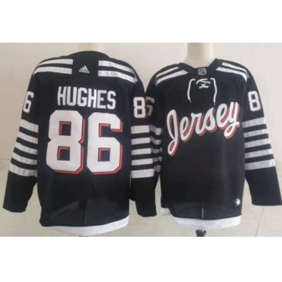 >Men's New Jersey Devils #86 Jack Hughes adidas Black 2021-22 Alternate Primegreen Authentic Pro Player Third Jersey