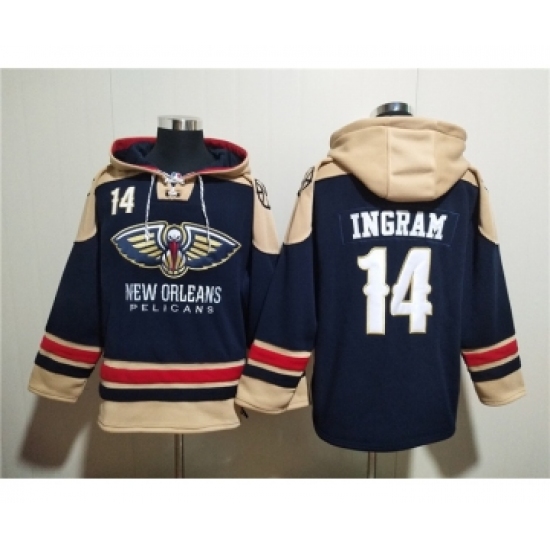>Men's New Orleans Pelicans #14 Brandon Ingram Navy Ageless Must-Have Lace-Up Pullover Hoodie