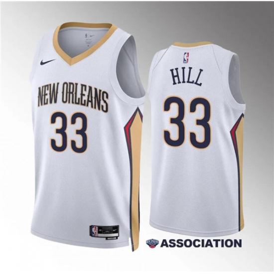 >Men's New Orleans Pelicans #33 Malcolm Hill White Association Edition Stitched Basketball Jersey