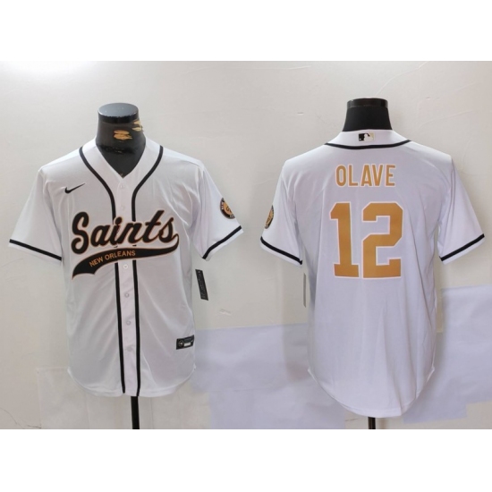 Men's New Orleans Saints #12 Chris Olave White Cool Base Stitched Baseball Jersey
