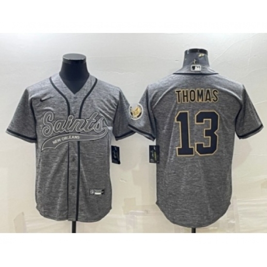 Men's New Orleans Saints #13 Michael Thomas Gray With Patch Cool Base Stitched Baseball Jersey