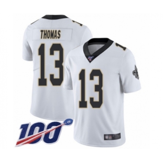 >Men's New Orleans Saints #13 Michael Thomas White Vapor Untouchable Limited Player 100th Season Football Jersey