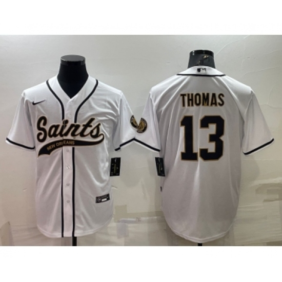 Men's New Orleans Saints #13 Michael Thomas White With Patch Cool Base Stitched Baseball Jersey