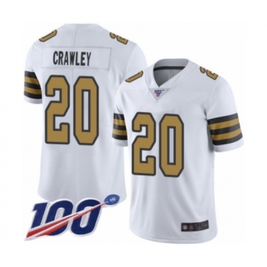Men's New Orleans Saints #20 Ken Crawley Limited White Rush Vapor Untouchable 100th Season Football Jersey