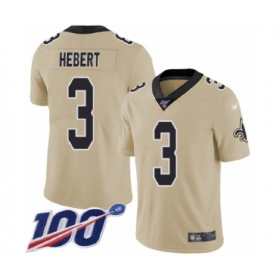 >Men's New Orleans Saints #3 Bobby Hebert Limited Gold Inverted Legend 100th Season Football Jersey