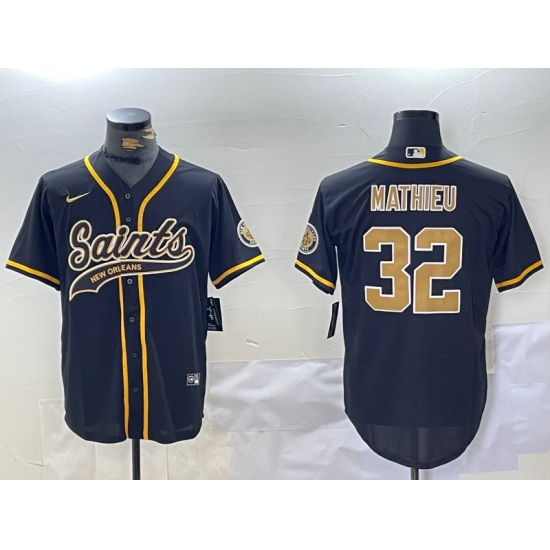 >Men's New Orleans Saints #32 Tyrann Mathieu Black Cool Base Stitched Baseball Jersey