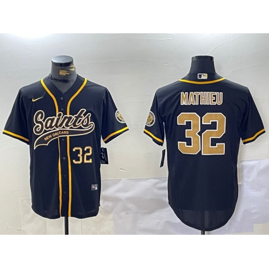 Men's New Orleans Saints #32 Tyrann Mathieu Black Nola Baseball Jersey