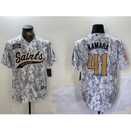 >Men's New Orleans Saints #41 Alvin Kamara Arctic Camo 2024 Salute to Service Stitched Baseball Jersey
