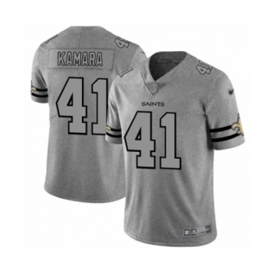 >Men's New Orleans Saints #41 Alvin Kamara Limited Gray Team Logo Gridiron Football Jersey