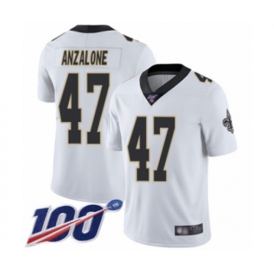 >Men's New Orleans Saints #47 Alex Anzalone White Vapor Untouchable Limited Player 100th Season Football Jersey