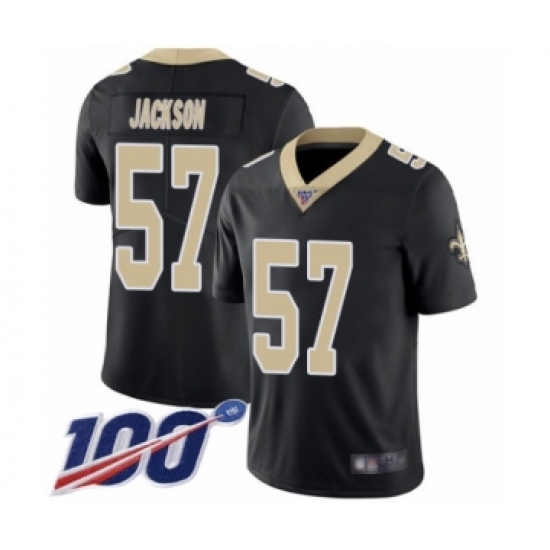 >Men's New Orleans Saints #57 Rickey Jackson Black Team Color Vapor Untouchable Limited Player 100th Season Football Jersey
