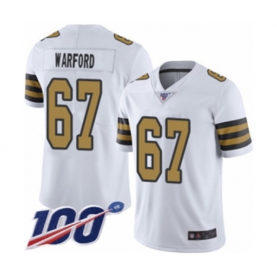 Men's New Orleans Saints #67 Larry Warford Limited White Rush Vapor Untouchable 100th Season Football Jersey