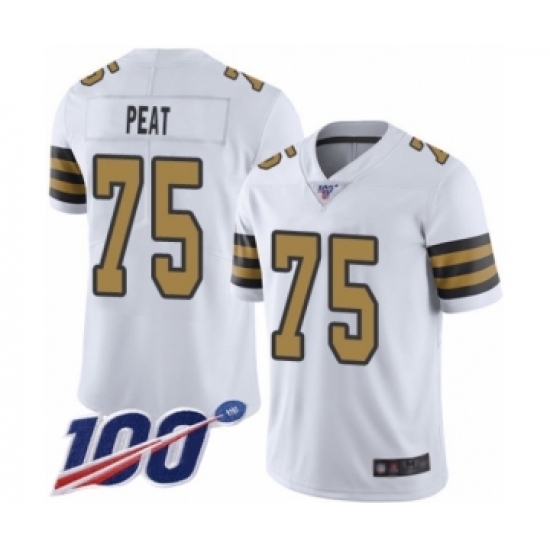 Men's New Orleans Saints #75 Andrus Peat Limited White Rush Vapor Untouchable 100th Season Football Jersey