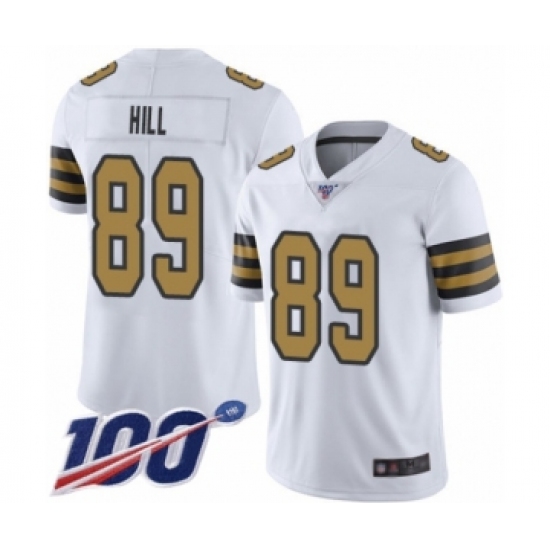 >Men's New Orleans Saints #89 Josh Hill Limited White Rush Vapor Untouchable 100th Season Football Jersey