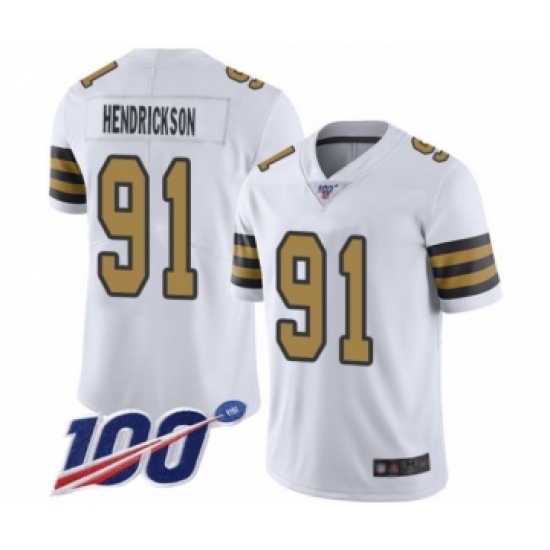 >Men's New Orleans Saints #91 Trey Hendrickson Limited White Rush Vapor Untouchable 100th Season Football Jersey