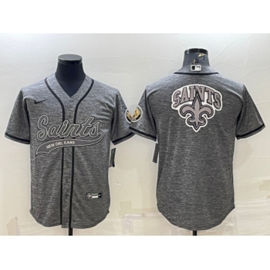 Men's New Orleans Saints Grey Team Big Logo With Patch Cool Base Stitched Baseball Jersey