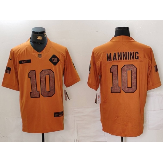 >Men's New York Giants #10 Eli Manning 2023 Brown Salute To Service Limited Stitched Jersey