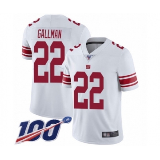 Men's New York Giants #22 Wayne Gallman White Vapor Untouchable Limited Player 100th Season Football Jersey