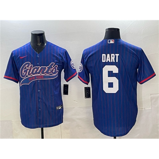 >Men's New York Giants #6 Jaxson Dart Royal Pinstripe With Cool Base Stitched Baseball Jersey