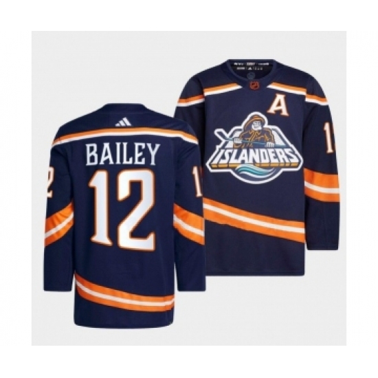 >Men's New York Islanders #12 Josh Bailey 2022 Navy Reverse Retro 2.0 Stitched Jersey