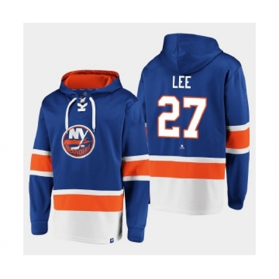 Men's New York Islanders #27 Anders Lee Royal Ageless Must-Have Lace-Up Pullover Hoodie