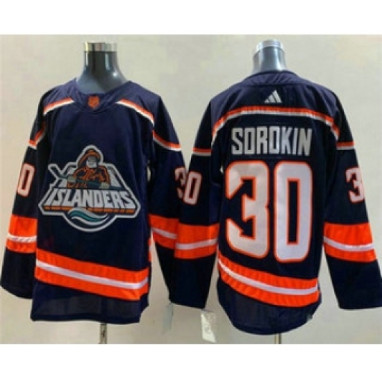 Men's New York Islanders #30 Ilya Sorokin Navy 2022 Reverse Retro Stitched Jersey
