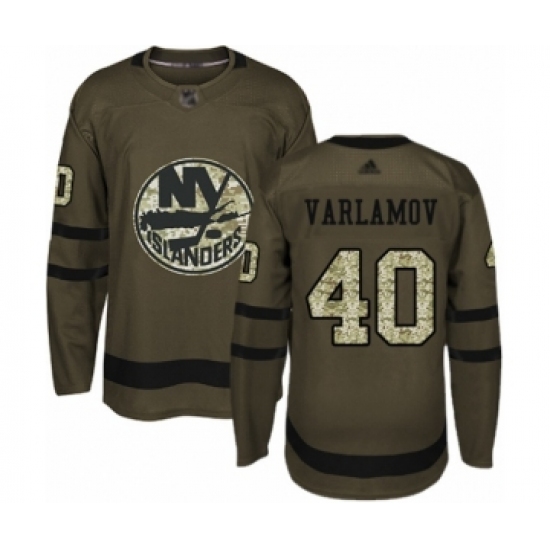 Men's New York Islanders #40 Semyon Varlamov Authentic Green Salute to Service Hockey Jersey