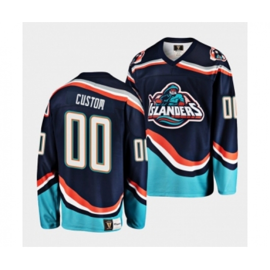 Men's New York Islanders Custom 2022 Navy Reverse Retro 2.0 Stitched Jersey