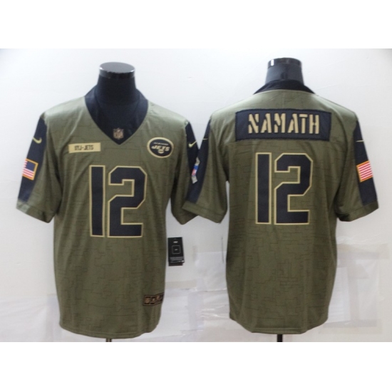 >Men's New York Jets #12 Joe Namath Nike Olive 2021 Salute To Service Limited Player Jersey