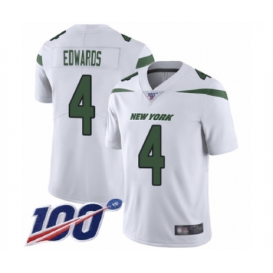 Men's New York Jets #4 Lac Edwards White Vapor Untouchable Limited Player 100th Season Football Jersey