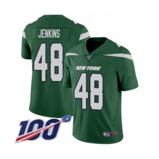 Men's New York Jets #48 Jordan Jenkins Green Team Color Vapor Untouchable Limited Player 100th Season Football Jersey